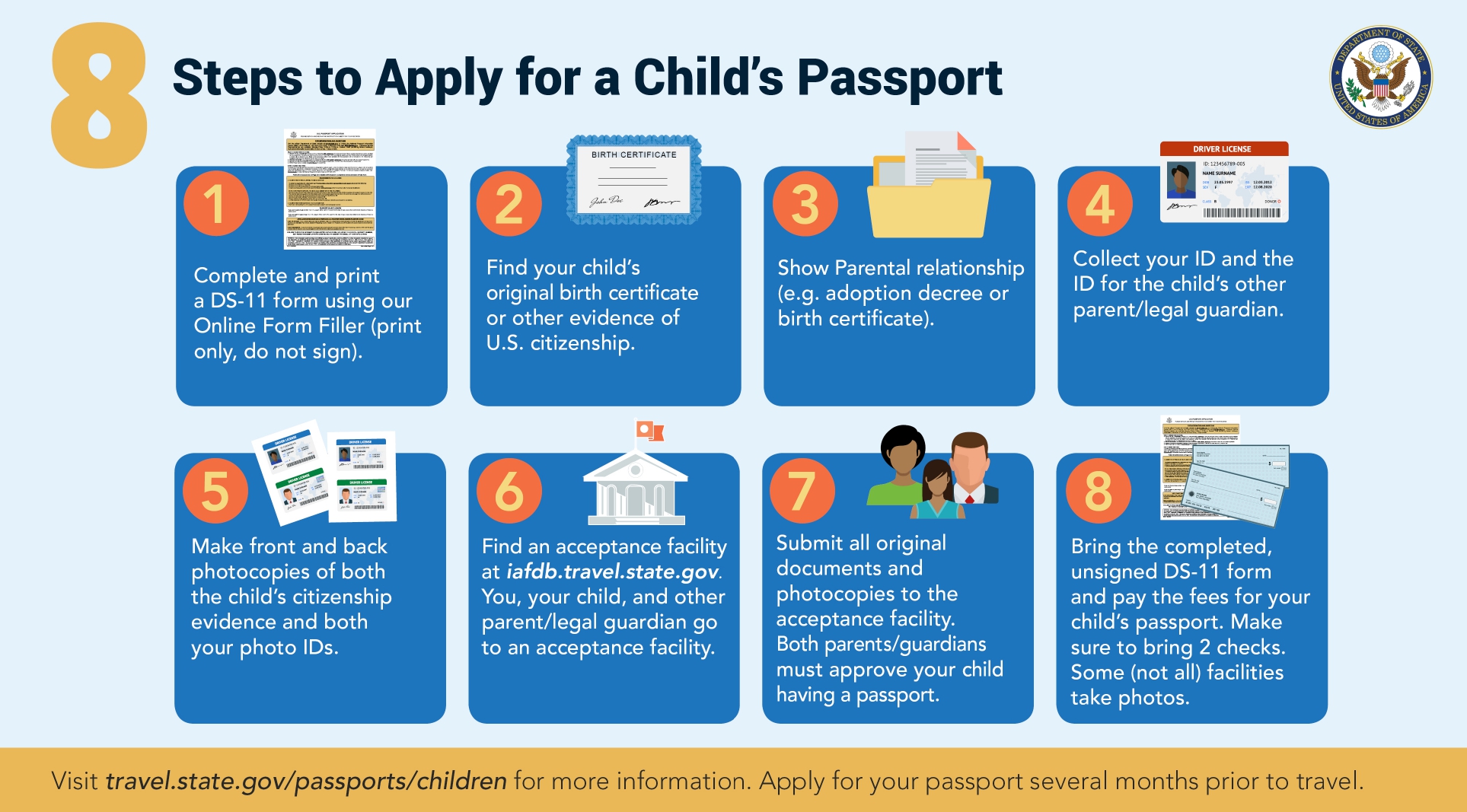 Applying for a child’s passport has additional requirements to protect minors.